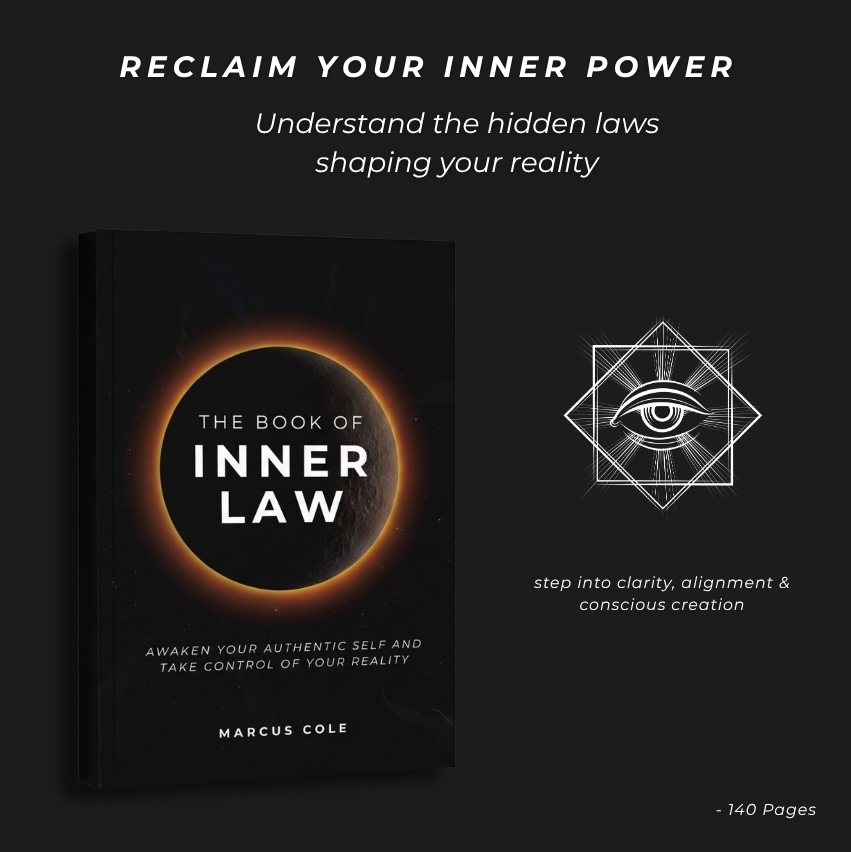 The Book of Inner Law by Marcus Cole reverses that. It gives you a clear framework for understanding that your external world is a reflection — not a cause. When you learn to work with the law operating inside you, everything outside begins to reorganize.